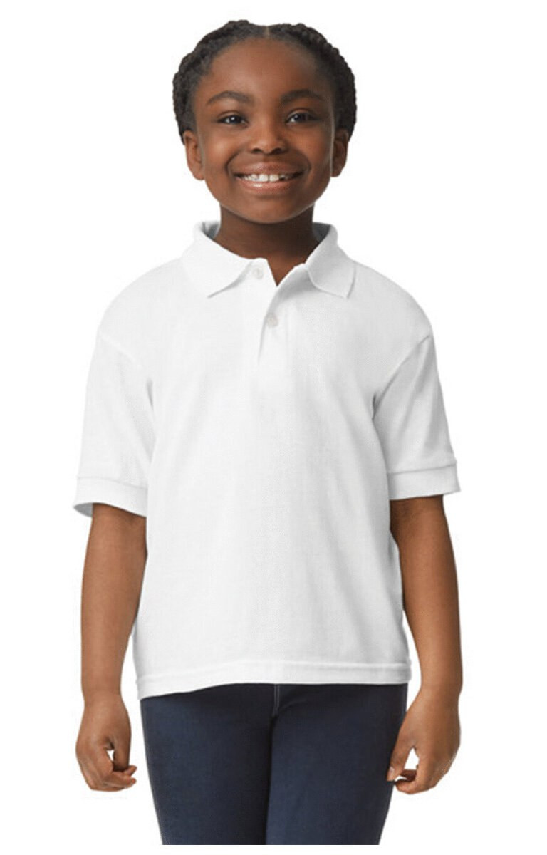 50% Cotton/ 50% polyester preshrunk jersey knit 9.4 oz. Two woodtone buttons on a clean fi nished placket. Contoured welt collar and cuffs. Double stitched seams.