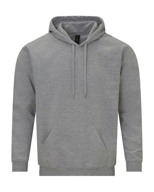 8.4 oz/sqyd, 80% ringspun US cotton, 20% polyester; 2-end ringspun cotton face fleece ; Made with 80% sustainably and fairly grown USA cotton; Dark Heather: 50% cotton, 50% polyester; RS Sport Grey: 75% cotton, 25% polyester; 2-piece color-matched jersey fabric lined hood with double-needle hem and; 3/8 flat drawcords ; 1x1 rib with spandex cuffs and bottom band for enhanced stretch and recovery ; Dropped shoulder ; Double-needle topstitching throughout ; Classic fit tubular body ; Grey pearlized tear away label; Gildan's manufacturing process utilizes 45% renewable energy; Gildans Community Investment Program supports education, the environment, humanitarian aid and active living in the communities we do business in