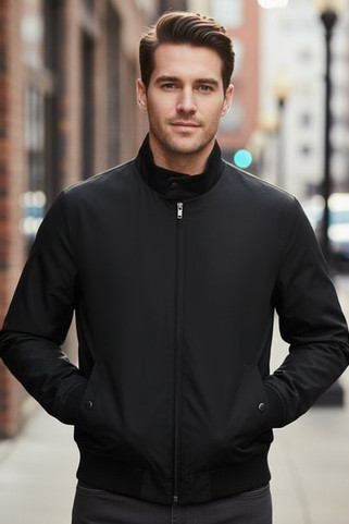Classic Fit Men's Harrington Jacket with Ribbed Knit