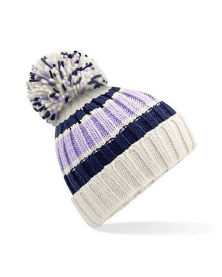 Beechfield B392 - Luxurious Shearling-Lined Striped Pom Pom Beanie -33%