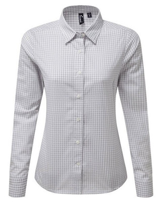 Premier Workwear PR350 - Womens Cotton Checkered Long Sleeve Shirt with Roll-Up -21%