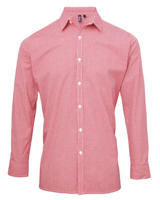 Premier Workwear PR220 - Mens Semi-Fitted Gingham Cotton Long Sleeve Shirt -20%
