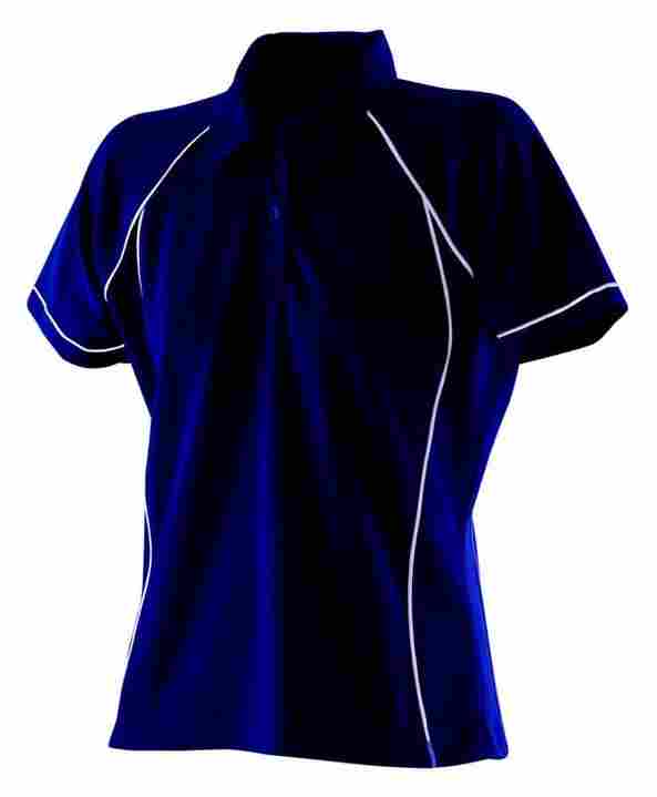 Coolplus® modified polyester fibre draws moisture away from skin to keep cool and dry. Self fabric collar. Two self colour button placket. Piping along raglan seams and at body sides and cuffs, front and back. Shaped side seams. Side vents. Twin needle hem.