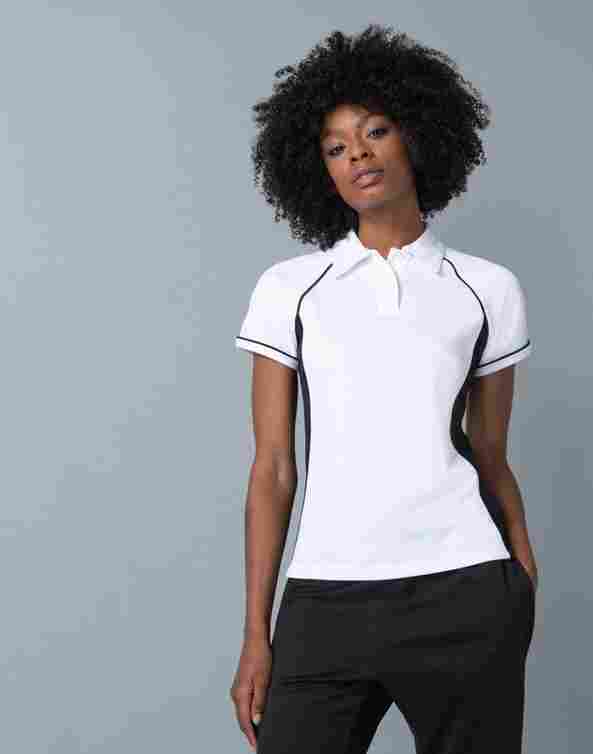 Coolplus® modified polyester fibre draws moisture away from skin to keep cool and dry. Self fabric collar. Two self colour button placket. Piping along raglan seams and at body sides and cuffs, front and back. Shaped side seams. Side vents. Twin needle hem.