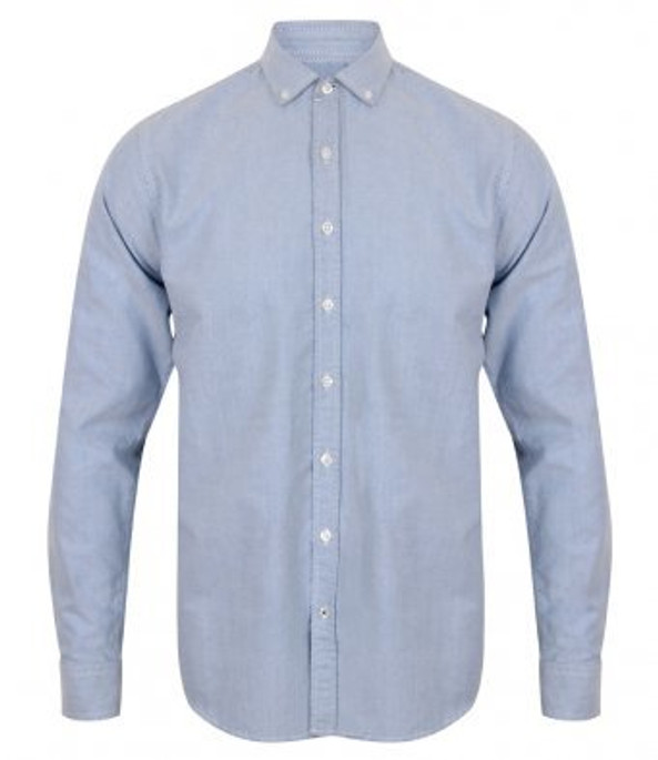 Super soft brushed oxford. Slim fit. Narrow button down collar. Pearlised buttons with cross-stitch. Back yoke. One button cuff. Tag free.
