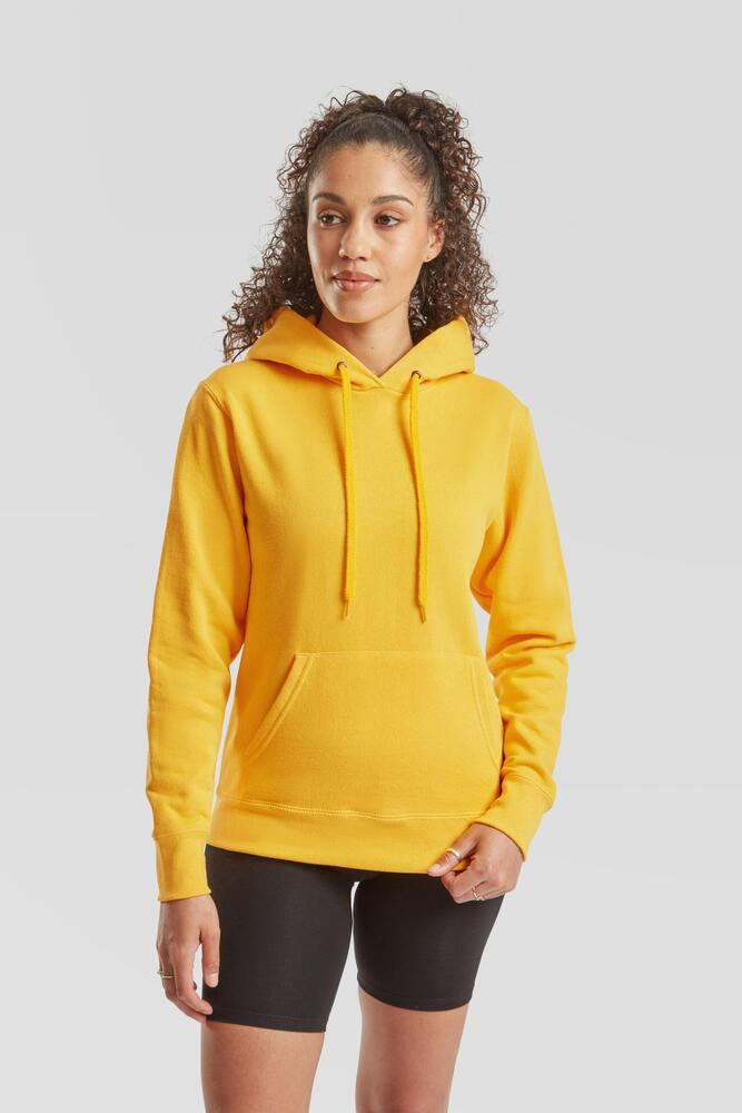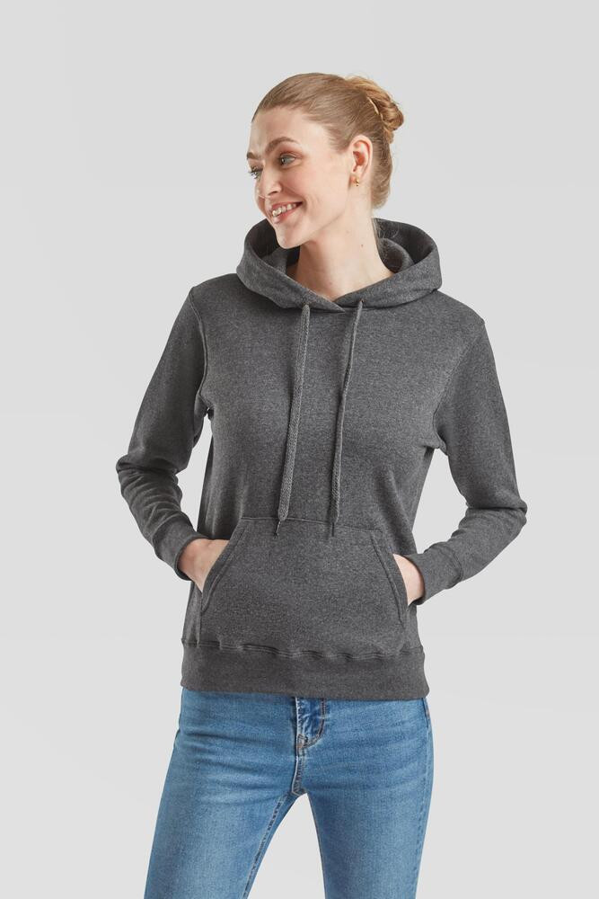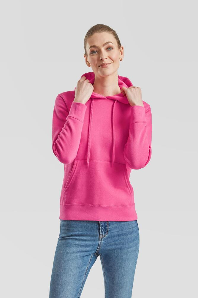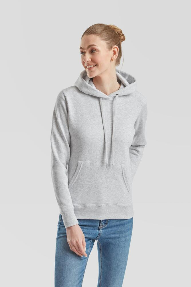 A Classic Hooded Sweatshirt Designed Specifically For Ladies With Shaped Side Seams & A More Fitted Silhouette, For A Smarter, More Feminine Look. Double Fabric Hood With Self-Coloured Draw Cord