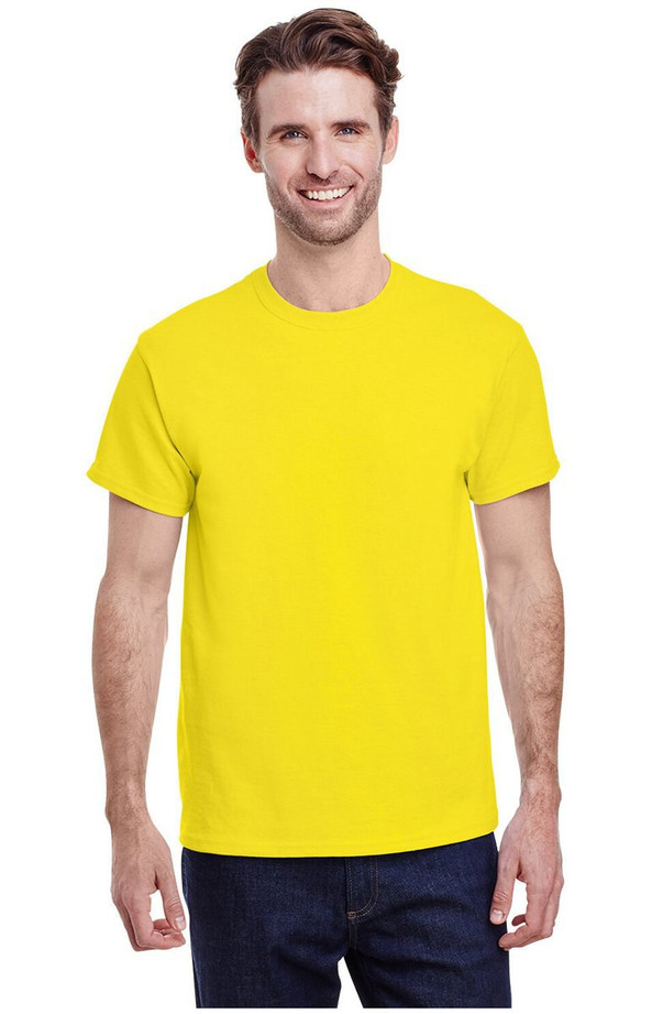 -Sunset, Safety Pink, Russet, Neon (Green, Blue), Midnight, Lilac, Blackberry, Tweed, Safety Green, S. Orange, Dark Heather, Graphite Heather, and Heather (Military Green, Radiant Orchid, Red, Sapphire) are 50% cotton, 50% polyester