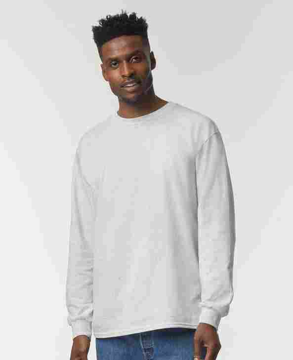 The Ever-Popular Gildan Ultra T-Shirt In A Long Sleeve Version. This Superheavyweight T Is A Favourite Across All Sectors From Promotions To Music Merchandise & It Comes In A Wide Choice Of Colours Including Safety Shades Ideal For Workwear. 205gsm Preshrunk Jersey Long Sleeved T-Shirt
