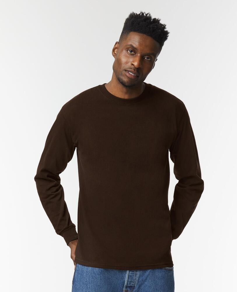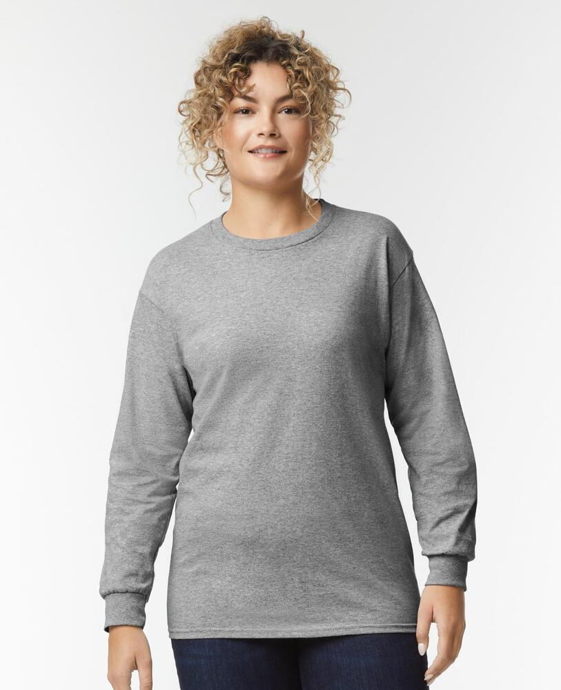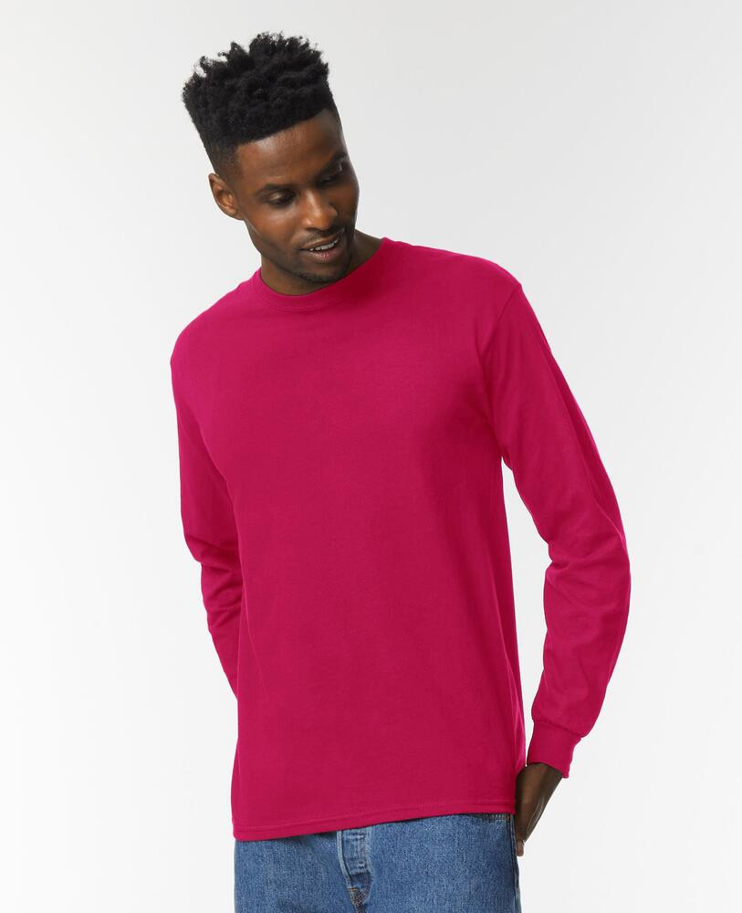 The Ever-Popular Gildan Ultra T-Shirt In A Long Sleeve Version. This Superheavyweight T Is A Favourite Across All Sectors From Promotions To Music Merchandise & It Comes In A Wide Choice Of Colours Including Safety Shades Ideal For Workwear. 205gsm Preshrunk Jersey Long Sleeved T-Shirt