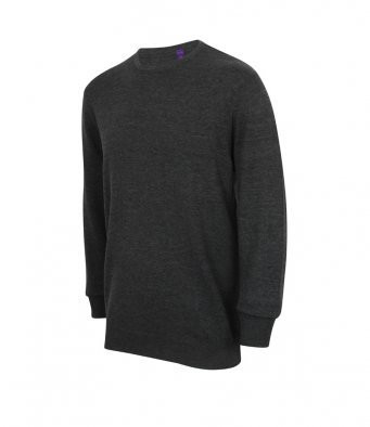 12 gauge. Set in sleeves. Semi-fashioned sleeve and neck detail. 1x1 rib hem and cuffs.
