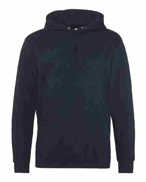 Thumb holes in the cuffs, kangaroo pouch pocket and flat lace drawcords