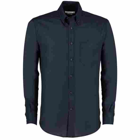 Fused stand up collar. Button down collar. Double button cuffs with gamble placket. Double folded side and side seams (double stitched). Chest pocket to left side as worn. Single stitched yoke and armholes. Shirt tail hem. Darted back panel. Spare button. Kustom Kit®Woven label. 50° Wash Washing Instructions Machine wash 50 with bar under do not bleech , do not dry clean, do not tumble dry , two dot iron