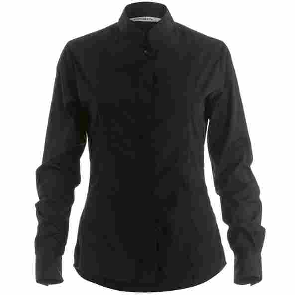 Soft fused mandarin collar. Easy iron. Concealed placket. Two front darts. Two back darts. Side vents. Single needle stitched yoke and armholes. Shirt tail hem. Spare button. Woven label. Washing Instructions 40 degree wash. Wash as synthetics. Wash dark colours together. Reshape whilst damp. Do not tumble dry