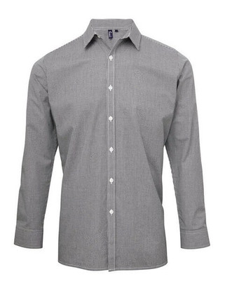 Premier Workwear PR220 - Mens Semi-Fitted Gingham Cotton Long Sleeve Shirt -20%