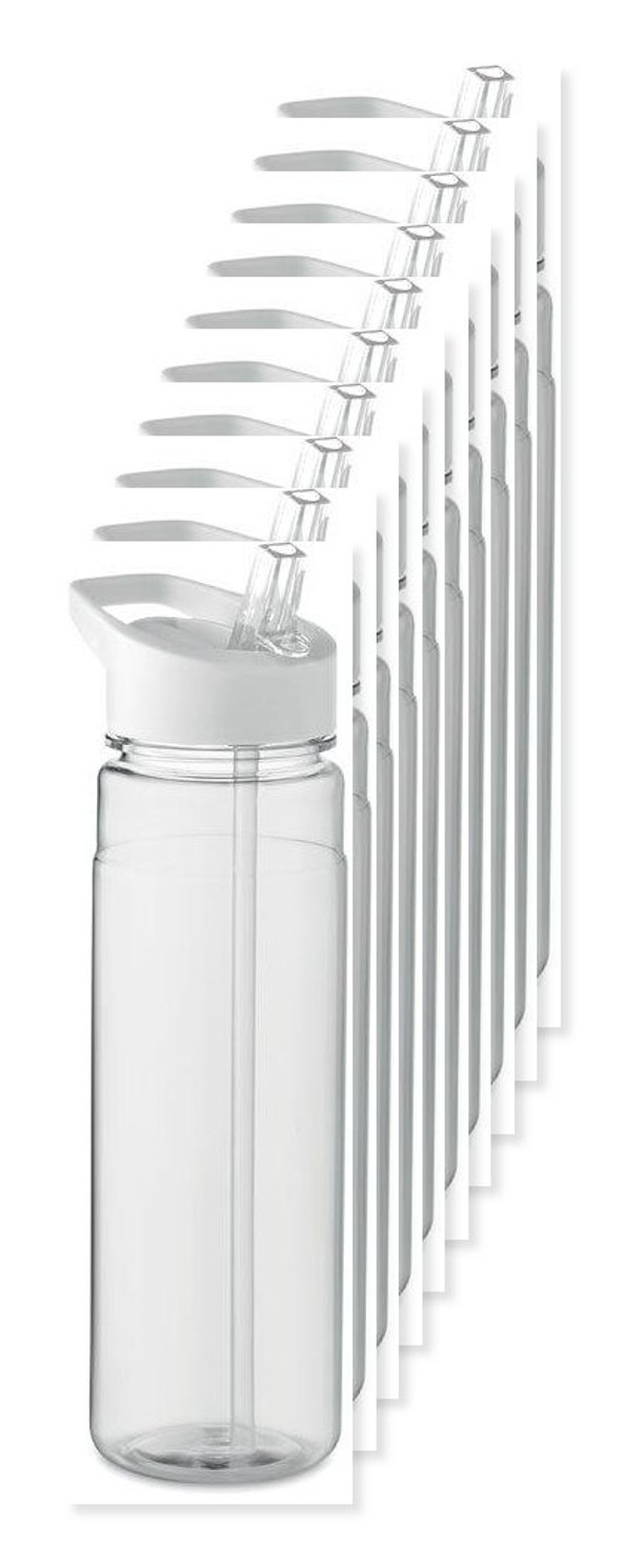 Pack of 10 GiftRetail MO6467 - White - ALABAMA RPET Eco-Friendly 650ml RPET Bottle with Flip Lid and Straw