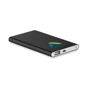 Ultra-slim 4000 mAh aluminum power bank provides reliable portable charging for smartphones in a sleek, professional metal casing. This compact device features a 5V/1A output, an LED indicator light, and includes a micro USB cable. Measuring just 0.9 cm in thickness, it is designed for portability and daily use. For businesses, this power bank serves as a premium canvas for branding, offering high durability and a flat surface suitable for customization. Whether used as a blank tech essential or a personalized corporate giveaway, it meets the needs of both individual users and bulk B2B buyers looking for quality promotional electronics.