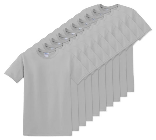 Pack of 10 Gildan 5000 - Sport Grey - Premium Heavy Cotton Classic Fit T-Shirt for Adults