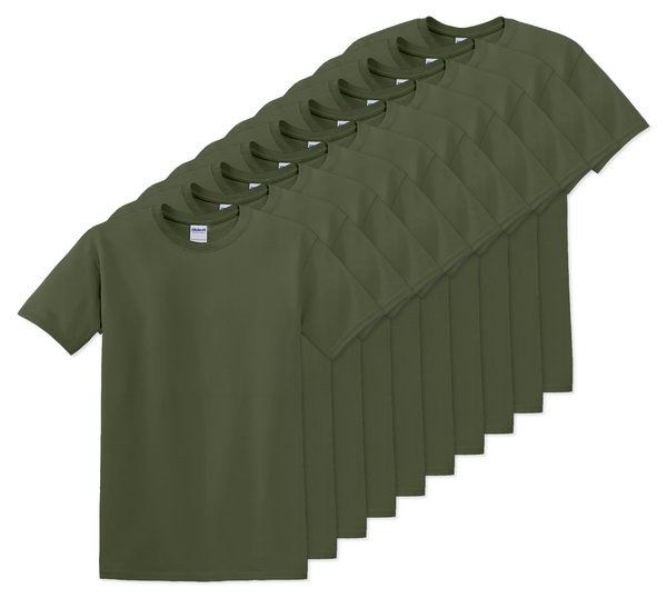 Pack of 10 Gildan 5000 - Military Green - Premium Heavy Cotton Classic Fit T-Shirt for Adults