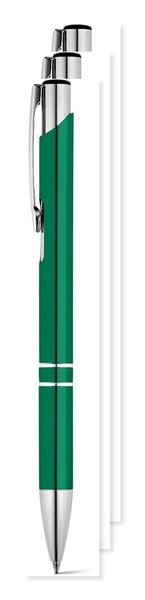 Pack of 3 Egotier 91311 - Green - Aluminium ball pen with clip
