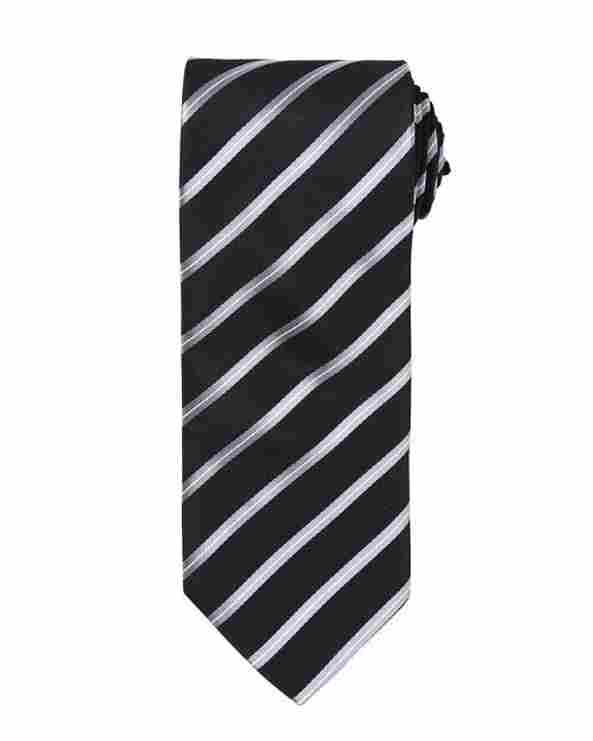 Premier Workwear PR784 - Black/Silver - Elegant Sports Stripe Polyester Tie for Men