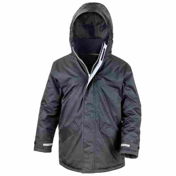 Waterproof-StormDri 2000. Windproof. Fully taped waterproof seams. Long fit. Super warm. Quick drying. Concealed 3 panel hood in collar with hood size adjuster.Full front heavy 7mm zip fastening. 2 Concealed front pockets with under storm flaps with super warm fleece linings. Tear release cuff strap and reflective tape cuff detail. Strom flap. Fleece trim on inside of collar. Reflective tape cuff detail. Reflective safety tape across lower back. Name and class tag inside left hand pocket. Reflective tape cuff detail. Fleece lining in pockets to keep hands warm. Adjustable drawcord hem (EN14682 compilant).Decoration Guidelines:Decorating methods: Embroidery, Direct print, Transfer print & Screen print transfer. Decorators access point: Full hem & left chest Washing Instructions 40 degrees. Do not bleach. Iron on a low heat. Do not tumble dry