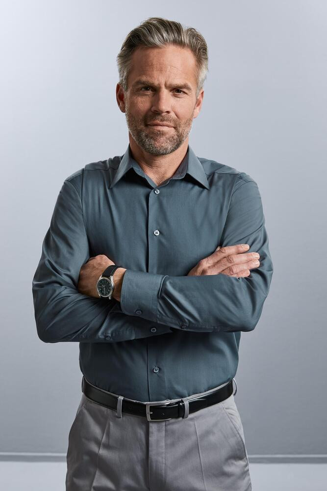 A Tailored Option To The Elegant & Versatile Russell Polycotton Poplin Range. Using The Same High-Performance Fabric & Premium Styling Details But In A Tailored, More Fitted Silhouette & Without A Chest Pocket For A Younger, More Contemporary Look.