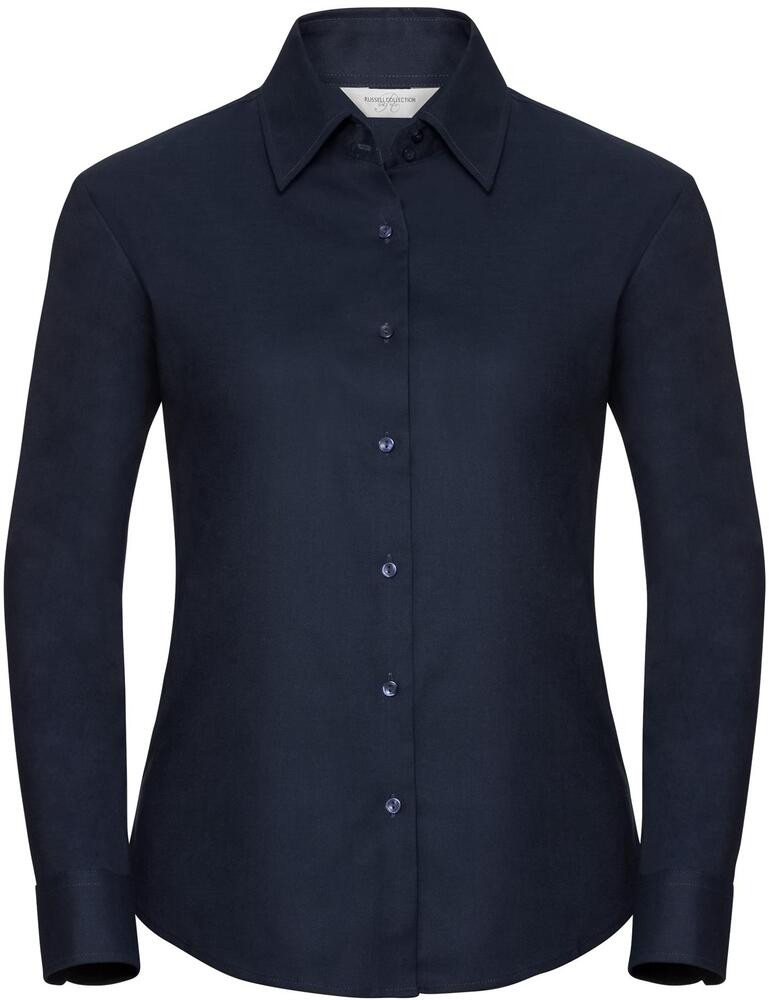 Elegant & Smart, This Easy-Care Oxford Shirt From The Russell Collection Has A Tailored Fit Designed To Flatter & Fit The Female Form In Sizes Up To 6xl. 2 Button Collar Stand With Classic Shaped Collar