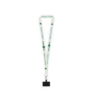 Sublimation lanyard made from recycled polyester (100% rPET) with carabiner, safety clasp, and smartphone holder