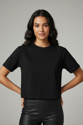 Women's Cropped Boxy T-Shirt with Stretch Neckline