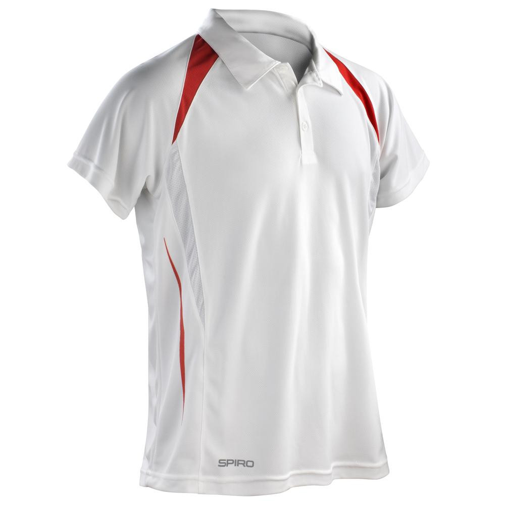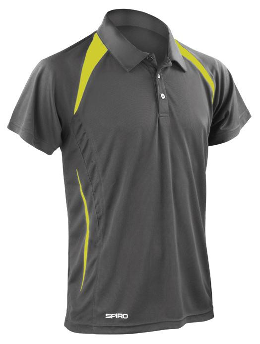 Performance lightweight polo. Breathable. Printed design feature. Soft comfort fit COOL-DRY® fabric. Quick drying. 3 button neck closing. Dropped hem. Keeps the skin cool and comfortable. Ideal layer garment, good warmth factor when wore as a layer. Extremely lightweight. Highlighted Spiro logo on right botton hem. Decoration Guidelines:Decorating methods: Embroidery & Transfer print. Decorators access point: Open Washing Instructions 40 degrees. Do not bleach. Iron on medium heat. No dry clean. No tumble dry