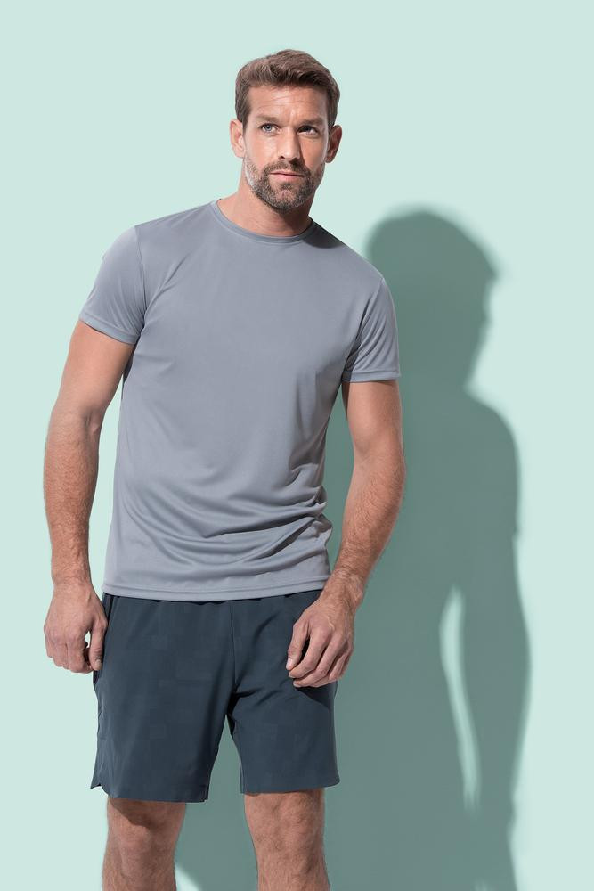 Short sleeve T-shirt 100% ACTIVE-DRY° polyester, small, reflecting ACTIVE-DRY° logo on the back, slim self-fabric collar, decorative flatlock shoulder seams, smooth and sleek fabric, small size label in the collar, care label in the side seam, side seams.