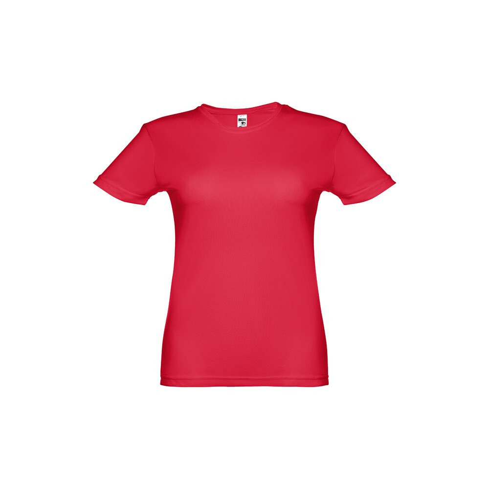 Technical slightly fitted T-shirt with short sleeves for women in 100% polyester jersey knit (130 g/m²). Regular fit, with comfortable and breathable fabric. Reinforced collar with jersey and double stitched sleeves and hemline Sizes: S, M, L, XL, XXL