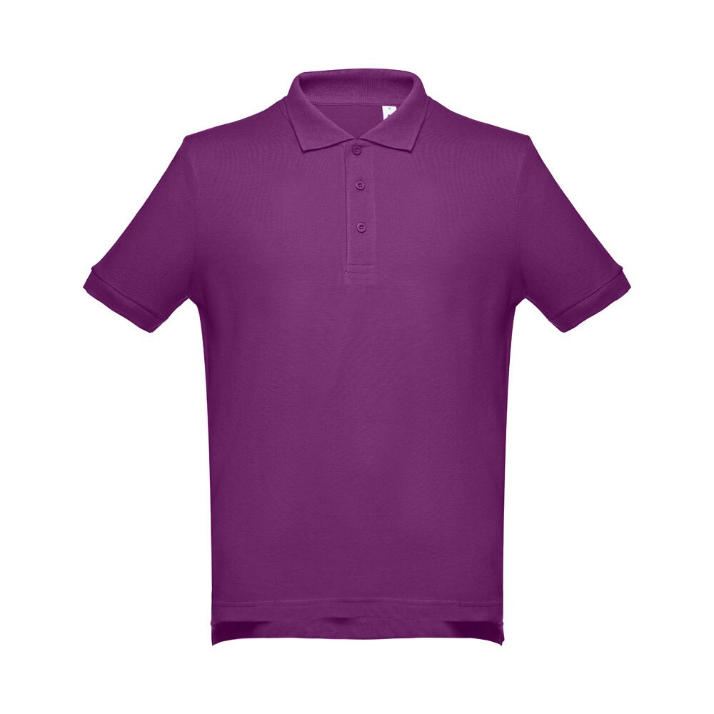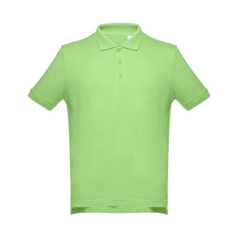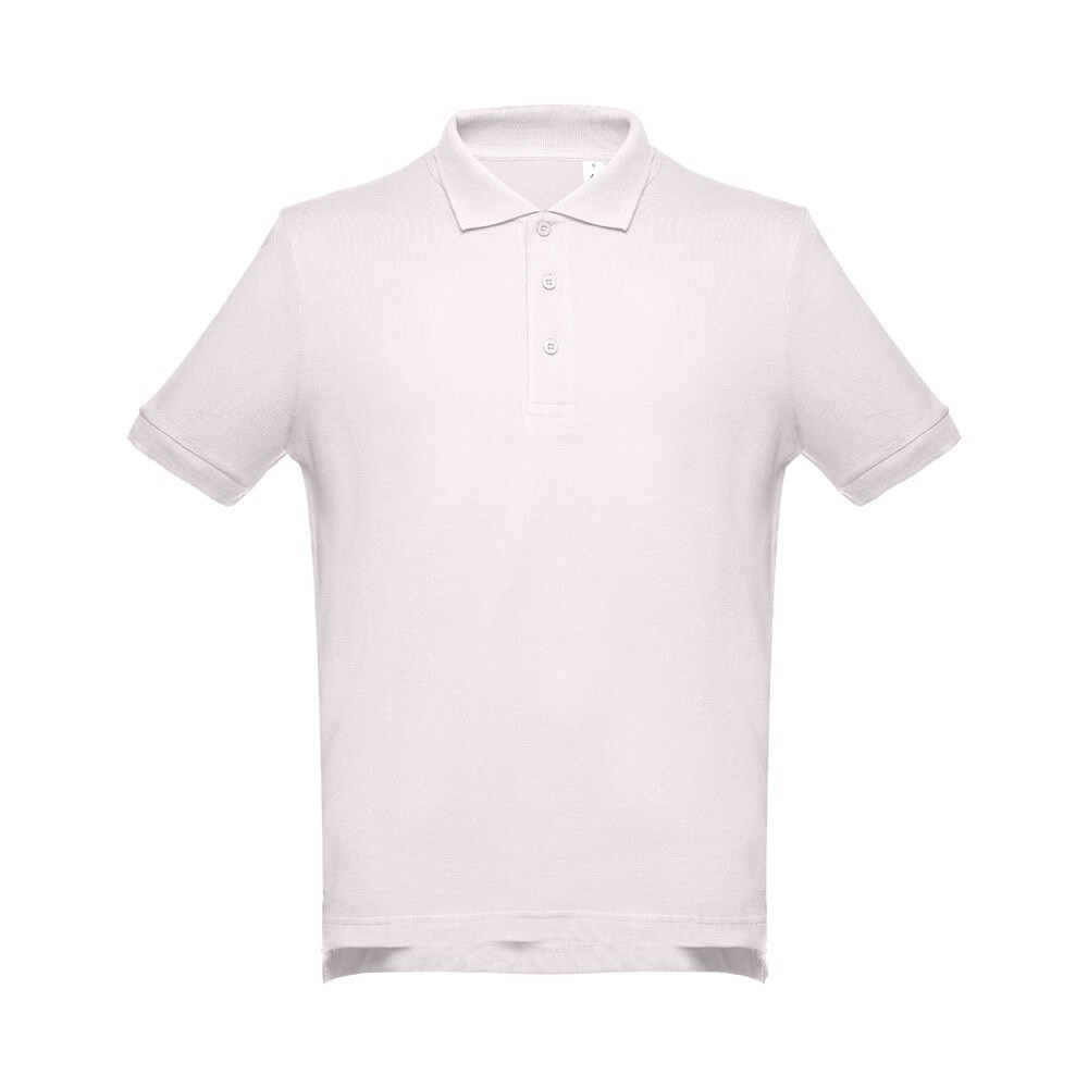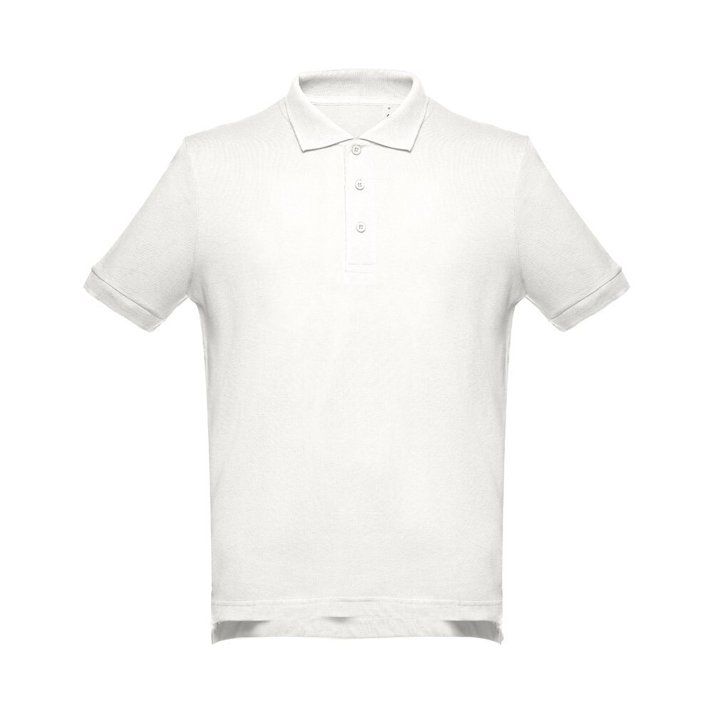 100% cotton carded piqué mesh short-sleeved men's polo (195 g/m²) (colour 183: 85% cotton/15% viscose). With a regular fit, this polo has rib collar and sleeves. The collar is reinforced with piqué ribbon. On the front, next to the collar, there are three matching colour buttons (extra button inserted in the inner seam). Piece cut and sewn with small side vents at the hem of the polo