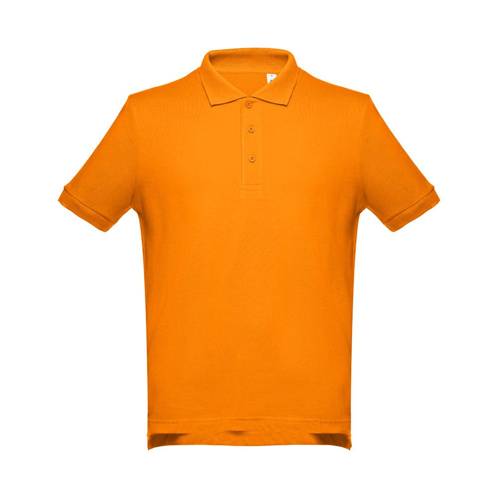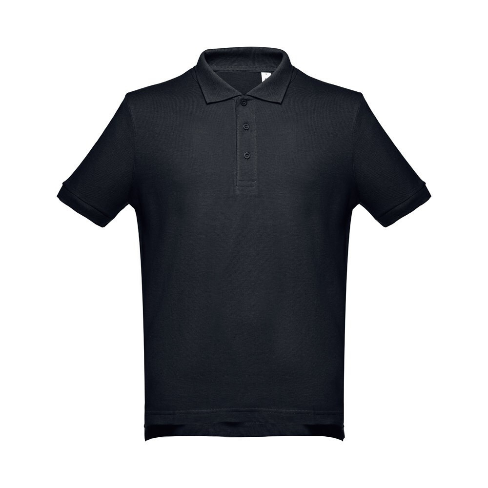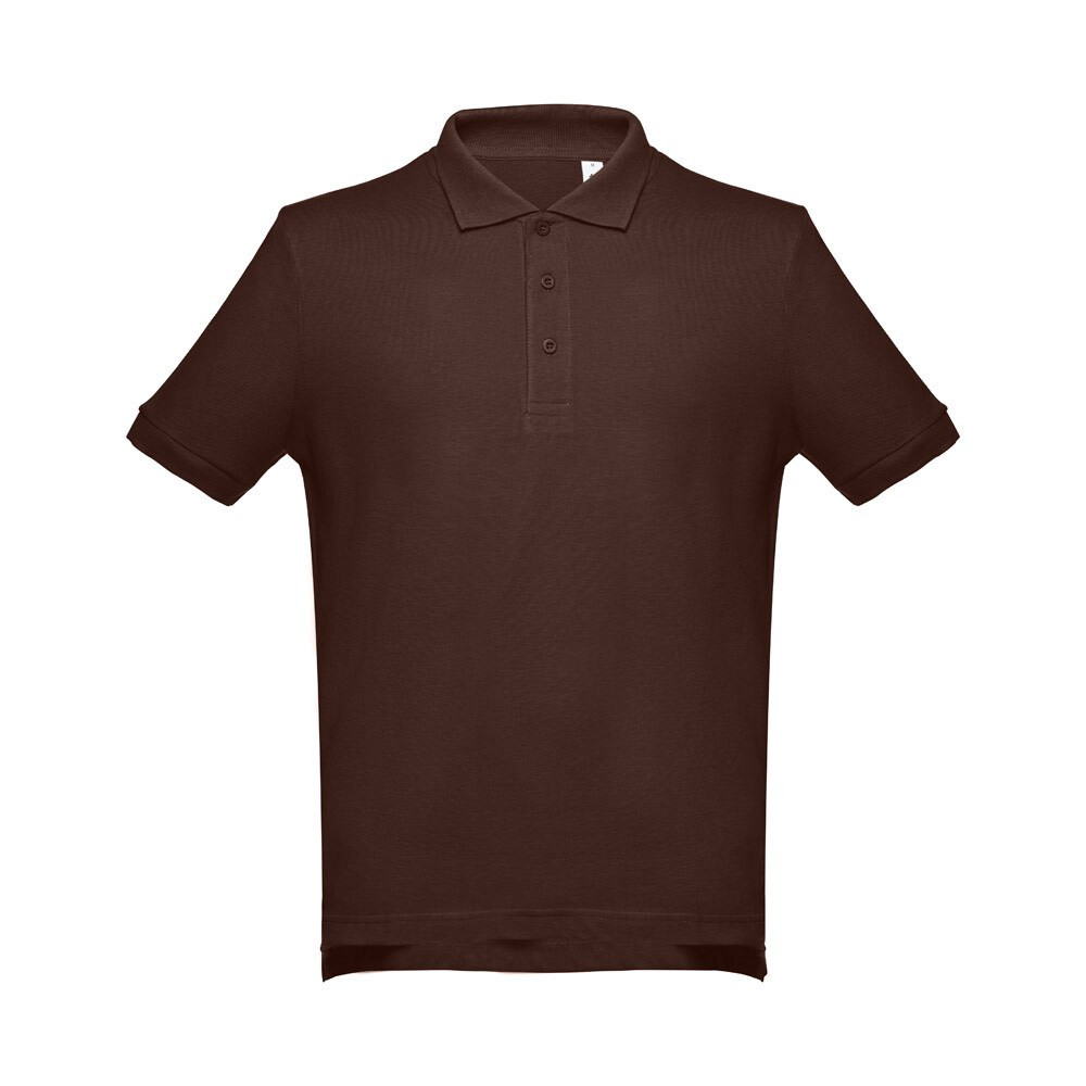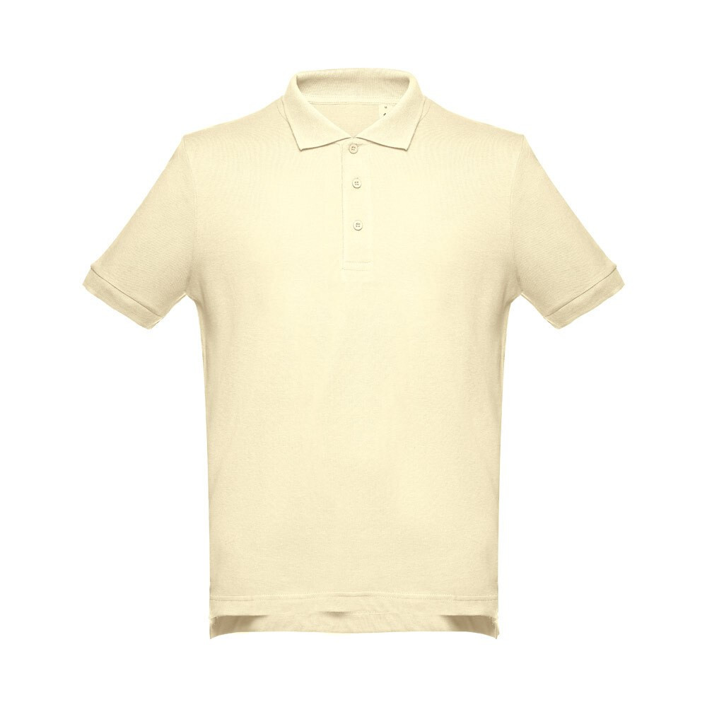 100% cotton carded piqué mesh short-sleeved men's polo (195 g/m²) (colour 183: 85% cotton/15% viscose). With a regular fit, this polo has rib collar and sleeves. The collar is reinforced with piqué ribbon. On the front, next to the collar, there are three matching colour buttons (extra button inserted in the inner seam). Piece cut and sewn with small side vents at the hem of the polo