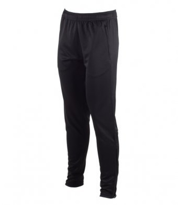 Slim fit. Elasticated waistband with inner drawcord. Two side pockets. Cuffed leg ends with zips. Tear out label.