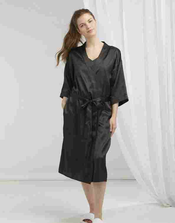 It's hard not to fall for this Towel City satin robe. It seduces by its kimono design and its length slightly below the knees which brings a singular charm and a modern touch to the whole.
