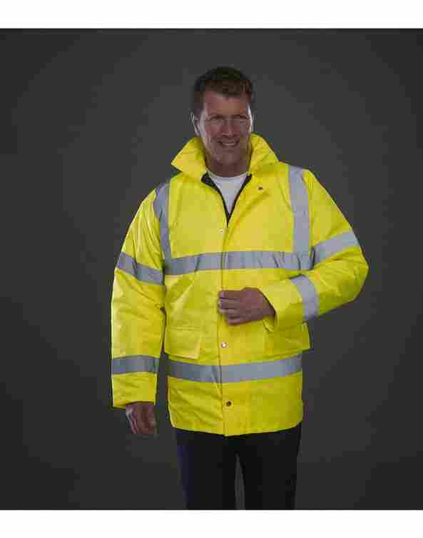 Safety jacket with reflective vertical and horizontal stripes on front and back